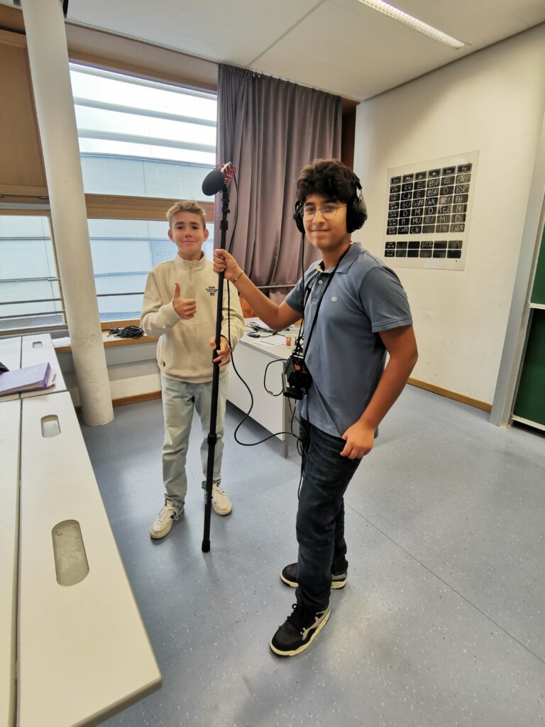 Die Schüler*innen der 4B verbrachten ihre Film Ween mit zwei äußerst sympathischen Natives aus den USA. Neben Warm-up Games aus dem Theater arbeitete die Klasse an einem gemeinsamen Drehbuch, woraufhin jede Szene mit professionellem Equipment gefilmt wurde. Den Schüler*innen der 4B hat das Schauspielern und Filmen unheimlich viel Spaß gemacht. Wir freuen uns alle sehr auf das Endergebnis: der Kurzfilm wird gerade noch bearbeitet.