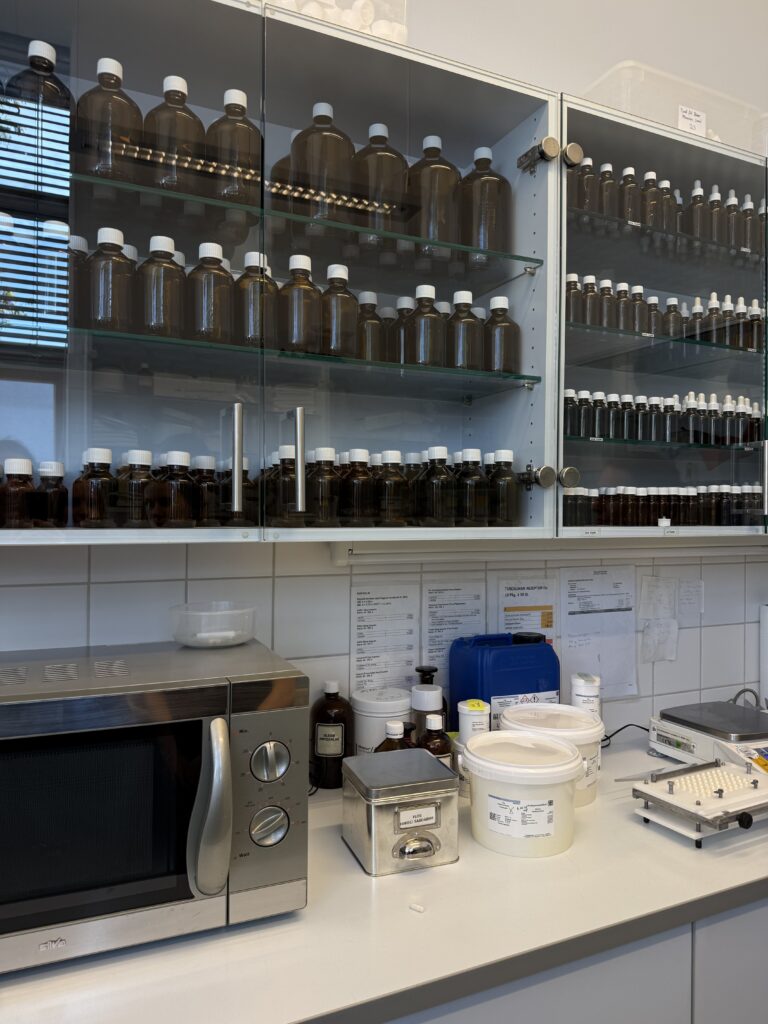 Am 20. Oktober besuchten die Schüler der WPGs Chemie und Biologie die Apotheke solarCity. Mag. Lummerstorfer informierte die Gruppe über die vielfältigen Aufgabenbereiche einer Apothekerin sowie über die verschiedenen Ausbildungswege in diesem Berufsfeld. Weiters zeigte sie uns das apothekeninterne Labor, in dem Arzneimittel wie Kapseln oder Augentropfen individuell hergestellt werden.
